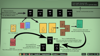 - Addition of a conflict mechanic - citizens will generate conflict cards that will attach to ideas / other citizens and produce negative effects